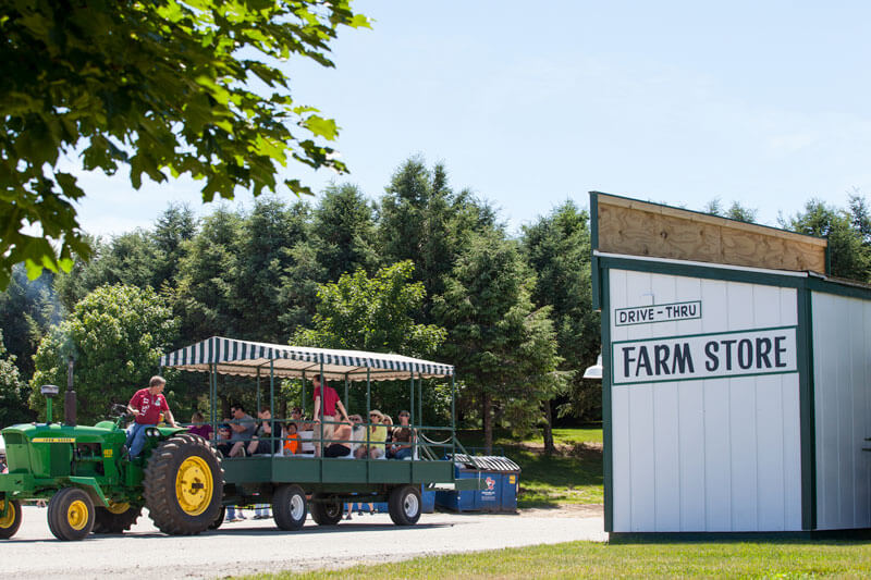 Our tour wagon will take you to the barns where you can see the cows and calves. We will stop in our show barn to see and learn about milking cows with robots and see the best Holsteins in our registered herd.